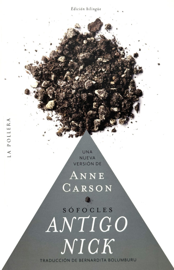 Carson condensa el texto griego e introduce anacronismos y referencias a Hegel, Brecht y Butler, es un texto condensado, casi minimalista, que se centra en el grito de desafío de Antígona contra el poder del Estado. En esta versión chilena, bajo el sello de La Pollera Ediciones, llega como una “nueva versión” que no esconde la identidad de quien traduce, la convierte en una declaración sobre la autoría y la mediación. Bernardita Bolumburu, señala que los personajes se escapan de la obra para reflexionar sobre ella misma, creando múltiples capas, que resuenan con debates contemporáneos.